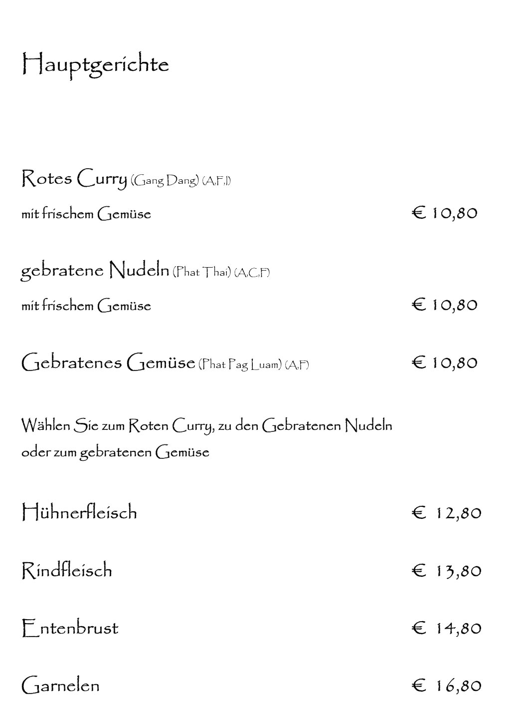 Wir bieten Ihnen eine große Auswahl an regionalen und thailändischen Spezialitäten. Alle Speisen werden frisch zubereitet und passend für Sie gewürzt. Hier geht es zu unserer Speisekarte.